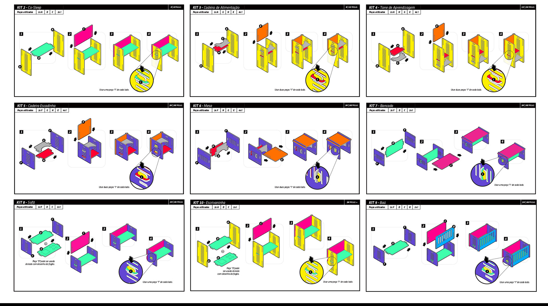 The main product is a furniture kit combo: 1 kit, with few pieces, can be converted until 10 different furnitures.