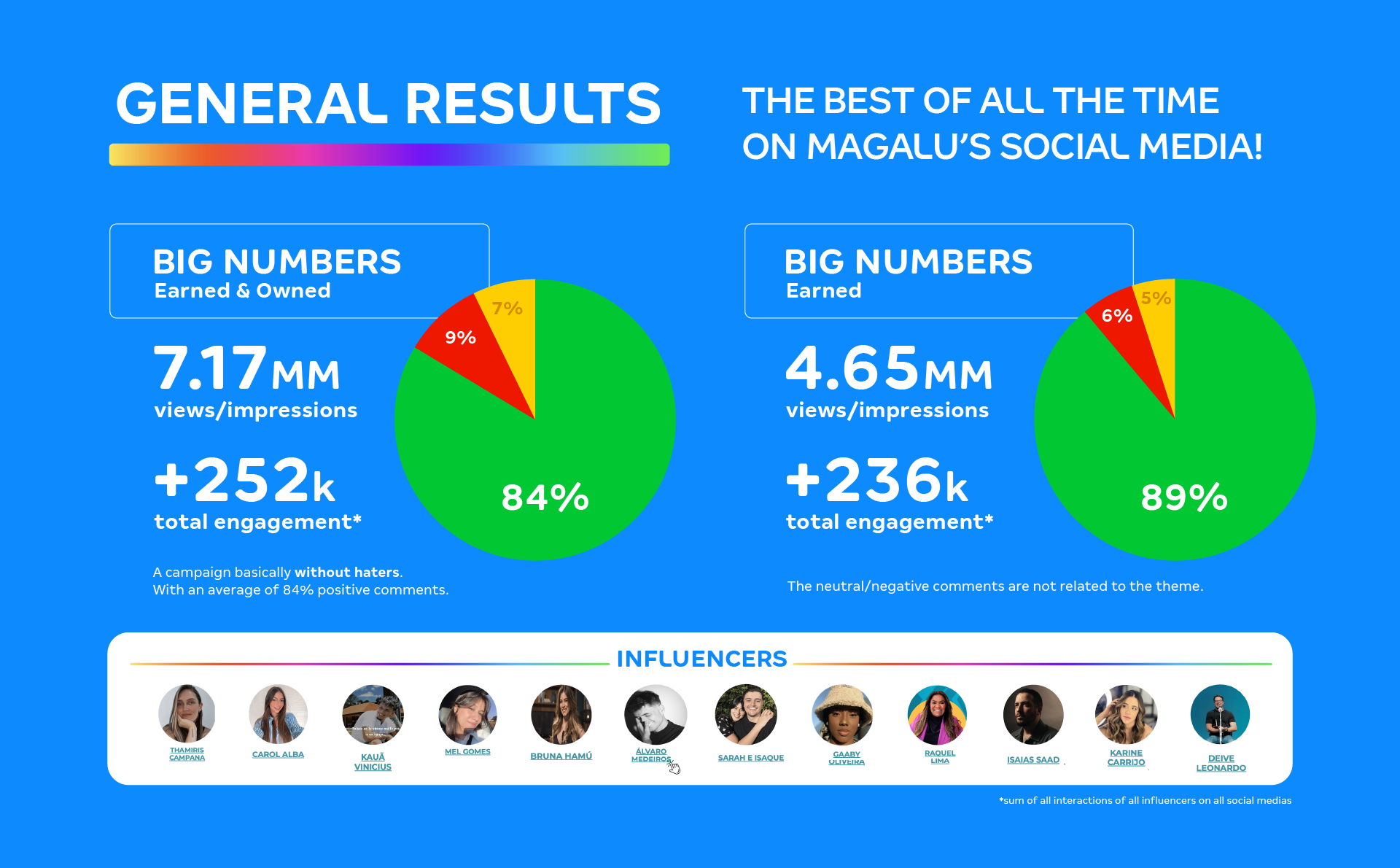 Lu, the Digital Influencer of Magalu, invited influencers to talk about what opening their arms to those they love means to them and called on followers to do the same. On Easter Sunday, we postED a video compiling the images of those who participated, along with the message we want to convey.